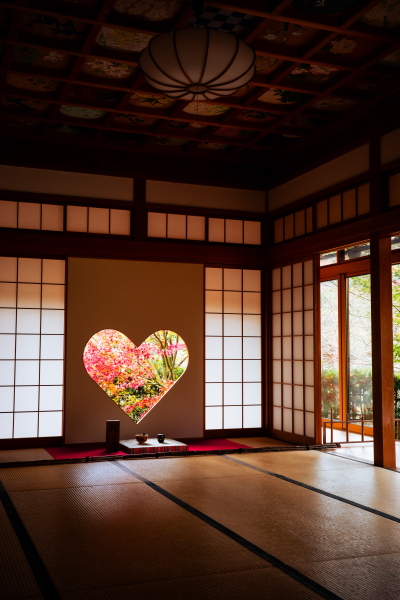 猪目窓はハートの形に似ていますが、その形は猪の目の文様に由来しているそうです。
